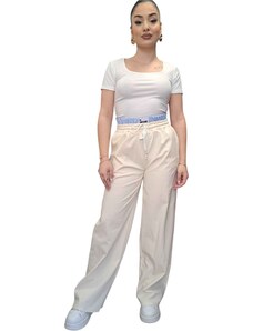 FashionWoman Γυναικείο Εκρου Παντελόνι με Ελαστική Ζώνη και Φαρδιά Γραμμή