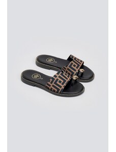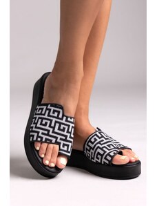 MIRA Asymmetric Printed Flatform Sandals - 77300101 - Black