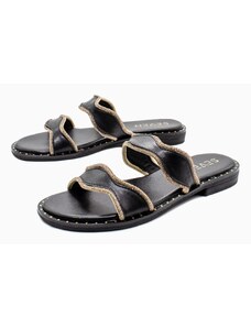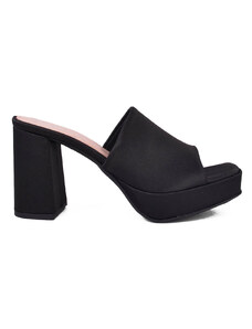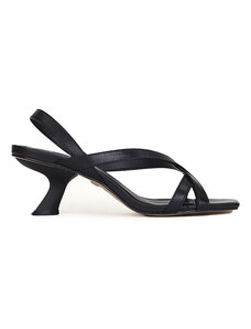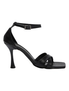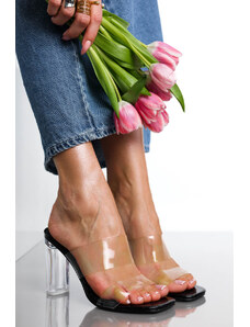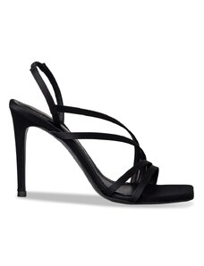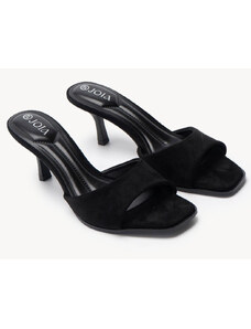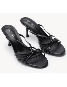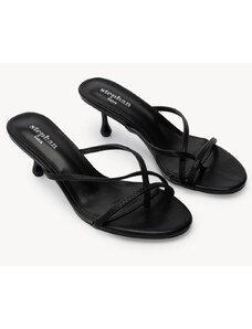 Ligglo Μαύρα Mules με Λεπτά Σταυρωτά Λουράκια και Λεπτό Τακούνι