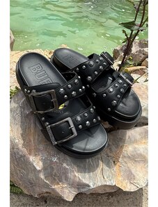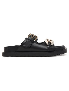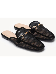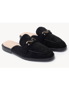 Ligglo Μαύρα Mules με Μεταλλική Αγκράφα και Υφασμάτινη Υφή