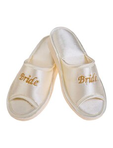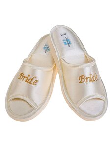 FMS Γυναικείες Νυφικές Παντόφλες Ανοιχτές Σατέν Bride, Χρώμα: Ιβουάρ