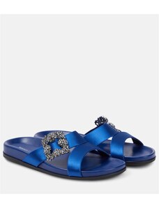 Manolo Blahnik Hangisimuflat embellished satin mules