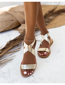 IRIS Leather Crossover Strap Sandals - 7/20 - Light Gold