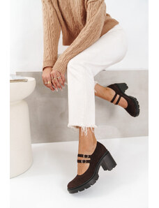 Καφέ παπούτσια λουστρίνι, με αγκράφα