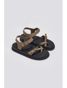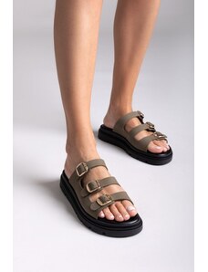 TFP Leather Flatform Sandals Three Straps - 4533 (nubuck) - Khaki