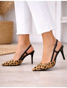 INSHOES DESIGN Open heel γόβες Ελληνικής κατασκευής με λεπτό τακούνι Λεοπάρ