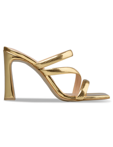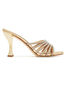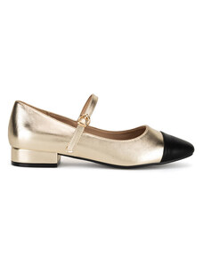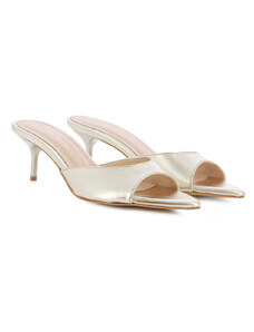 Χρυσά, ανοιξιάτικα παπούτσια από δερματίνη, με τακούνι