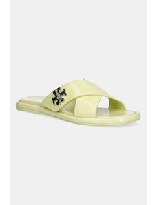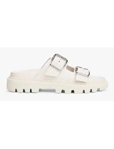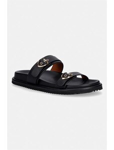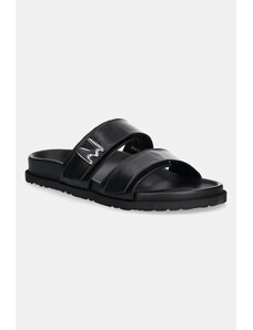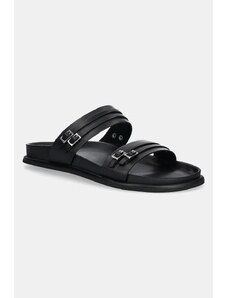Δερμάτινες παντόφλες Calvin Klein FLAT SANDAL SQUARED 2-BAR LTH