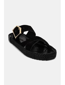 Παντόφλες σουέτ Calvin Klein FLAT SANDAL SQUARED HF SUE