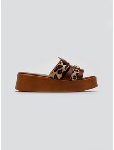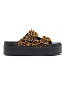 Estil Leather Ponyskin Flatform Sandals - 1209 (ponyskin leo) - Tan
