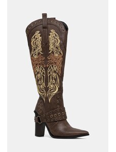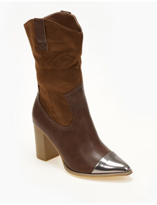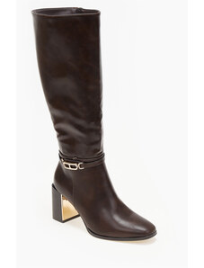 Issue Μπότες με χοντρό τακούνι και χρυσές λεπτομέρειες - Καφέ - 025011