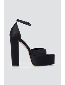 TFP Satin Platforms with Rhinestone Straps - 150 - Black/Steel