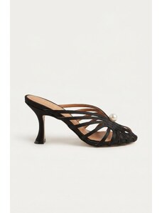 TFP Satin Mules Rhinestone Strap - 604 (σατέν) - Black