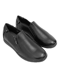 Μαύρα, ανατομικά παπούτσια από δερματίνη, με φερμουάρ