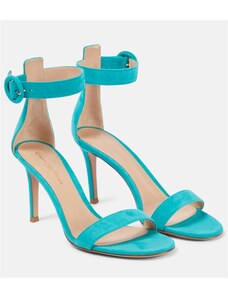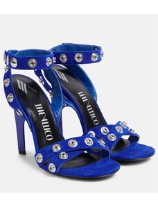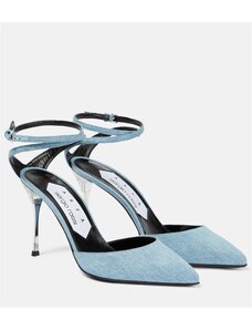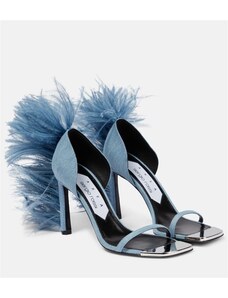 Area x Sergio Rossi Amazona feather-trimmed denim sandals