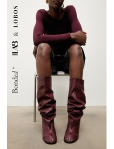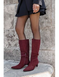 Ideal shoes Pointed Suede Boots with Kitten Heel - 6377 - Bordeaux Suede