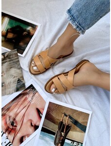 Καφέ Δερμάτινα Σανδάλια με Σταυρωτά Λουράκια – Χειροποίητα | Christina Christi