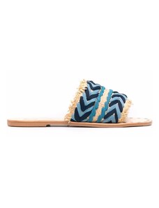 MANEBI Σανδαλια Blue Pattern Raffia & Chiffon; Yucatán S 1.4 Y0 blue pattern