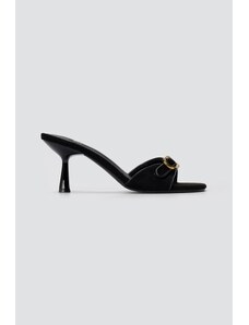 Stephan Slim Heel Mules Buckle Strap - P-1492 - Black Suede