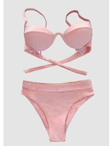 Parizianista μαγιό μπικίνι lurex με σταθερή μπανέλα στο μπούστο - Ροζ - 018014