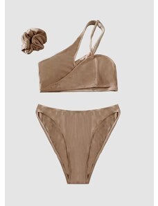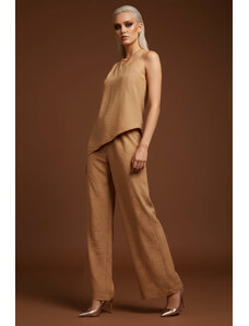 Parizianista σετ μπλούζα με έναν ώμο & παντελόνα με τσέπες - Μπεζ - 059009