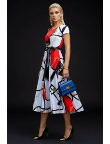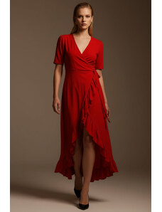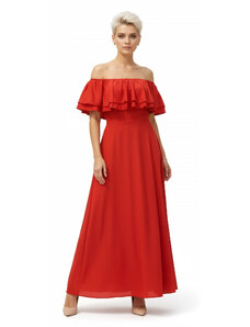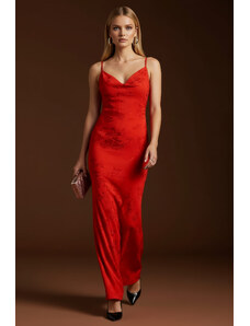 Parizianista Σατινέ Ανάγλυφο Φόρεμα “Muse” με Λεπτές Ράντες - Κόκκινο - 010009