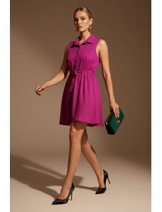 Parizianista φόρεμα mini αμάνικο με κουμπάκια & ζώνη - Ματζέντα - 074009