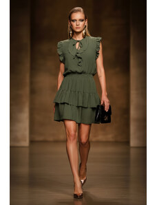 Parizianista Mini Φόρεμα Με Βολάν & Δέσιμο για Ρομαντικό Look - Χακί - 019009