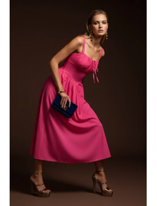 Parizianista Midi φόρεμα με τιράντες και σούρα στο μπούστο - Φούξια - 029009
