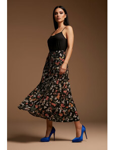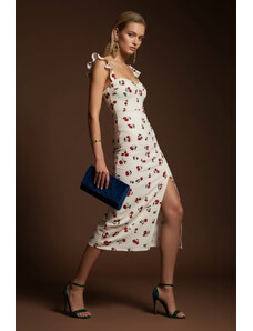 Parizianista φόρεμα floral midi με βολάν στις τιράντες & σκίσιμο - Εμπριμέ - 013009