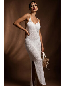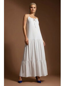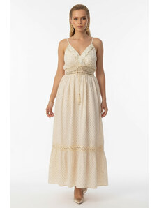 Parizianista Γυναικείο Maxi Φόρεμα Boho με Φαρδιές Τιράντες & Κεντήματα - Εκρού - 012009