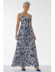 Parizianista floral maxi φόρεμα που δένει στο λαιμό - Μπλε - 025009
