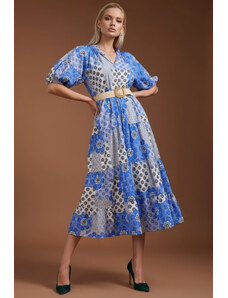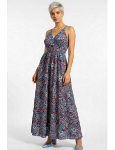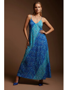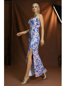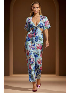 Parizianista floral maxi φόρεμα με ανοίγματα στη μέση - Γαλάζιο - 006009