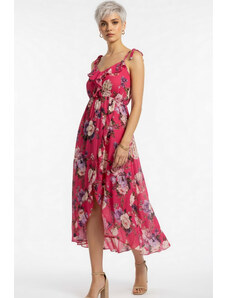 Parizianista φόρεμα maxi floral ασύμμετρο με βολάν και σκίσιμο - Φούξια - 029009