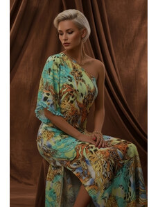 Parizianista εμπριμέ maxi φόρεμα αέρινο με έναν ώμο & σκίσιμο - Μπλε - 025004