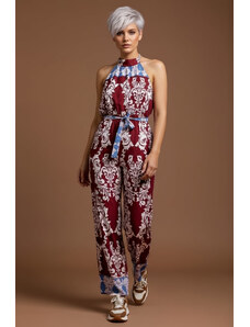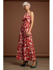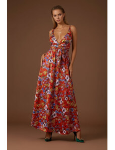 Parizianista floral φόρεμα maxi τιράντα με κρουαζέ ντεκολτέ & ζώνη - Κόκκινο - 010001