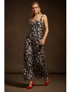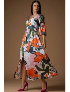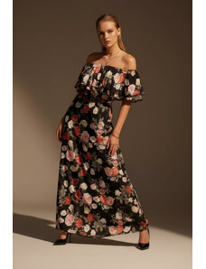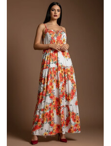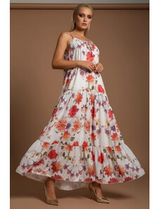 Parizianista maxi φόρεμα με διπλή τιράντα & σκίσιμο - Floral - 032001