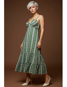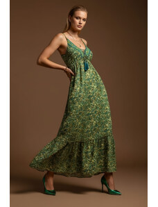 Parizianista boho maxi φόρεμα με κορδόνι στο μπούστο - Πράσινο - 039009