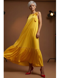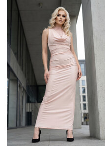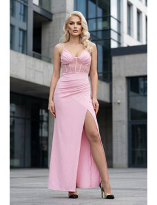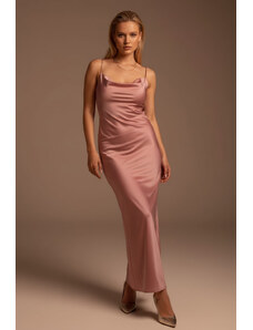 Parizianista maxi σατινέ φόρεμα τιράντα σε ίσια γραμμή - Ροζ - 018009