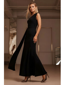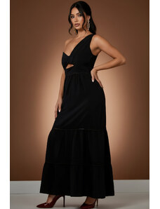 Asymmetrical Maxi Φόρεμα με Έναν Ώμο & Κόψιμο – Parizianista - Μαύρο - 002001