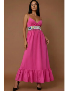 Parizianista Γυναικείο Maxi Φόρεμα Με Τιράντες & Δαντέλα - Ροζ - 018009