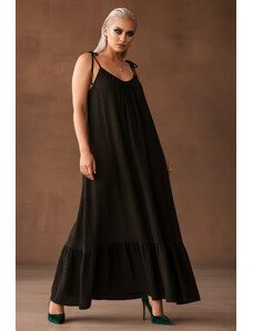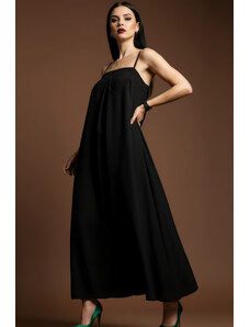 Parizianista φόρεμα maxi με ανοιχτή πλάτη & δετές τιράντες - Μαύρο - 002004