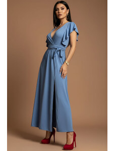 Parizianista maxi φόρεμα με σκίσιμο & βολάν μανίκια - Μπλε - 025004