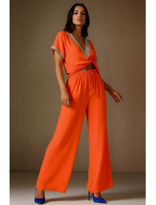 Parizianista Σετ Μπλούζα & Παντελόνα με Κεντητές Λεπτομέρειες - Πορτοκαλί - 022009