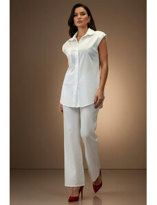 Parizianista σετ πουκάμισο αμάνικο με βάτες & παντελόνι με λάστιχο - Λευκό - 009009