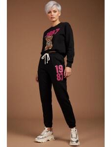 Parizianista Γυναικείο Σετ Φόρμας με Hoodie & Παντελόνι - Μαύρο - 002009