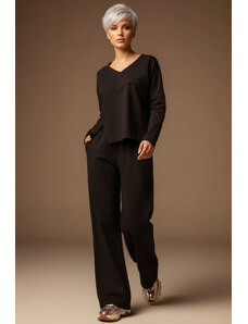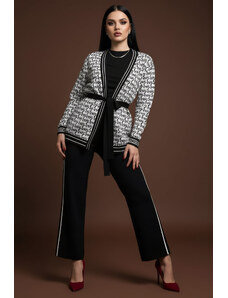 Parizianista σετ πλεκτό παντελόνι με κοντομάνικο μπλουζάκι & ζακέτα - Μαύρο - 002009