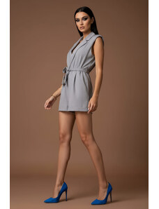 Parizianista ολόσωμο σορτς αμάνικο κρουαζέ με λεπτή ρίγα & ζώνη - Γκρι - 007009