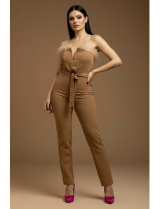 Parizianista ολόσωμη φόρμα strapless με πούπουλα στο ντεκολτέ - ταμπά - 057014