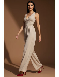 Parizianista ολόσωμη φόρμα πολυμορφική με σούρες στην μέση & ανοιχτή πλάτη - Εκρού - 012009